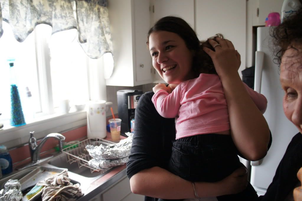 She found her in the kitchen and thanked her with a huge hug and a quick cuddle. |